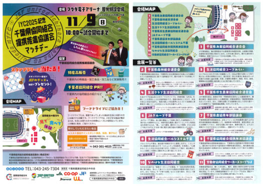 本会は本年、2025国際協同組合年(IYC2025)にちなみ、千葉県内の各協同組合と連携し11月9日(日)、フクダ電子アリーナ(千葉市)にて、「IYC2025記念 千葉県協同組合提携推進協議会マッチデー」と銘打って、明治安田J2リーグに所属するジェフユナイテッド市原・千葉と藤枝MYFCとの試合を協賛します。